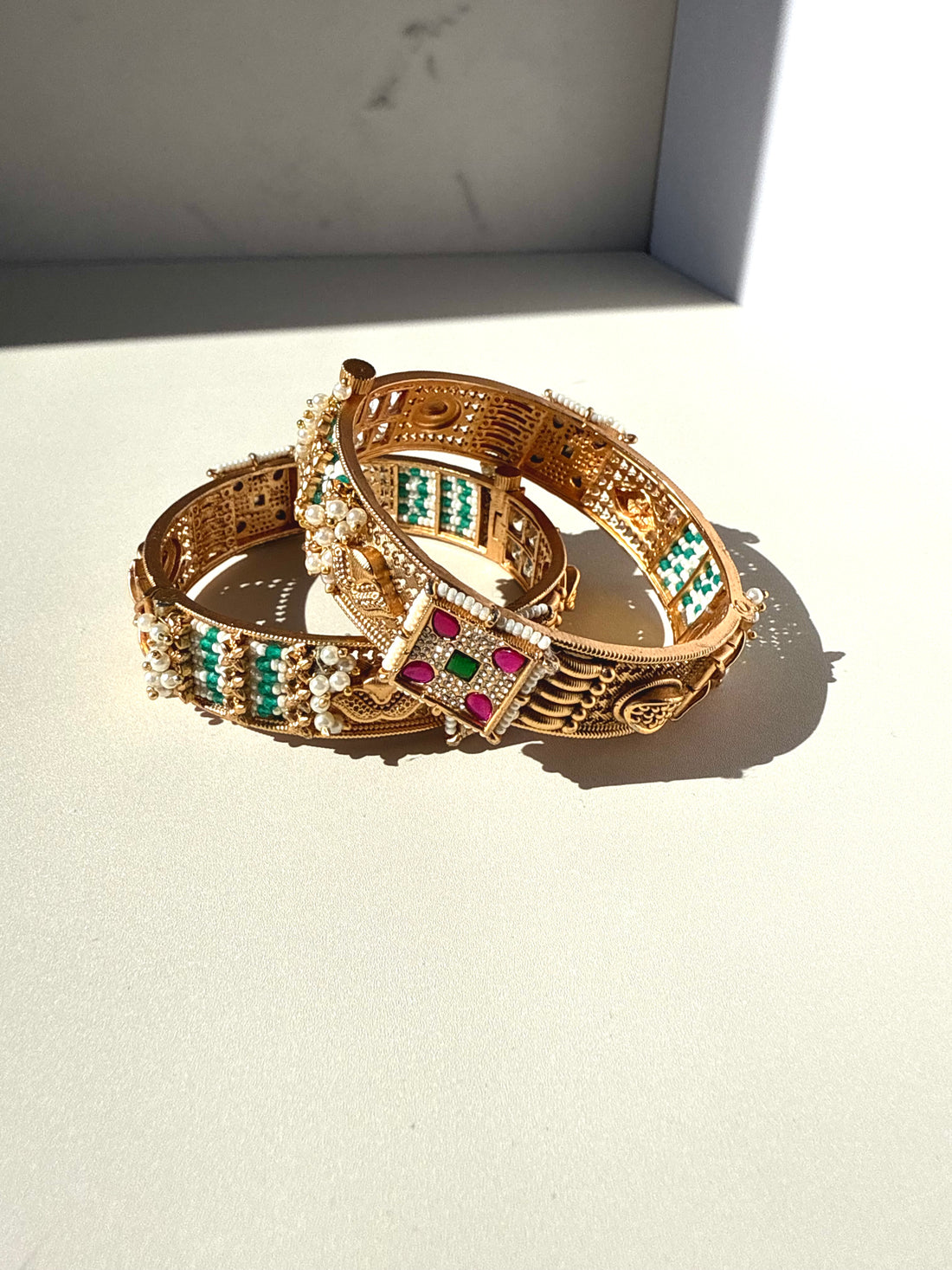 Premium Brass Traditional Openable Set of 2 Bangles w Pirohi Work