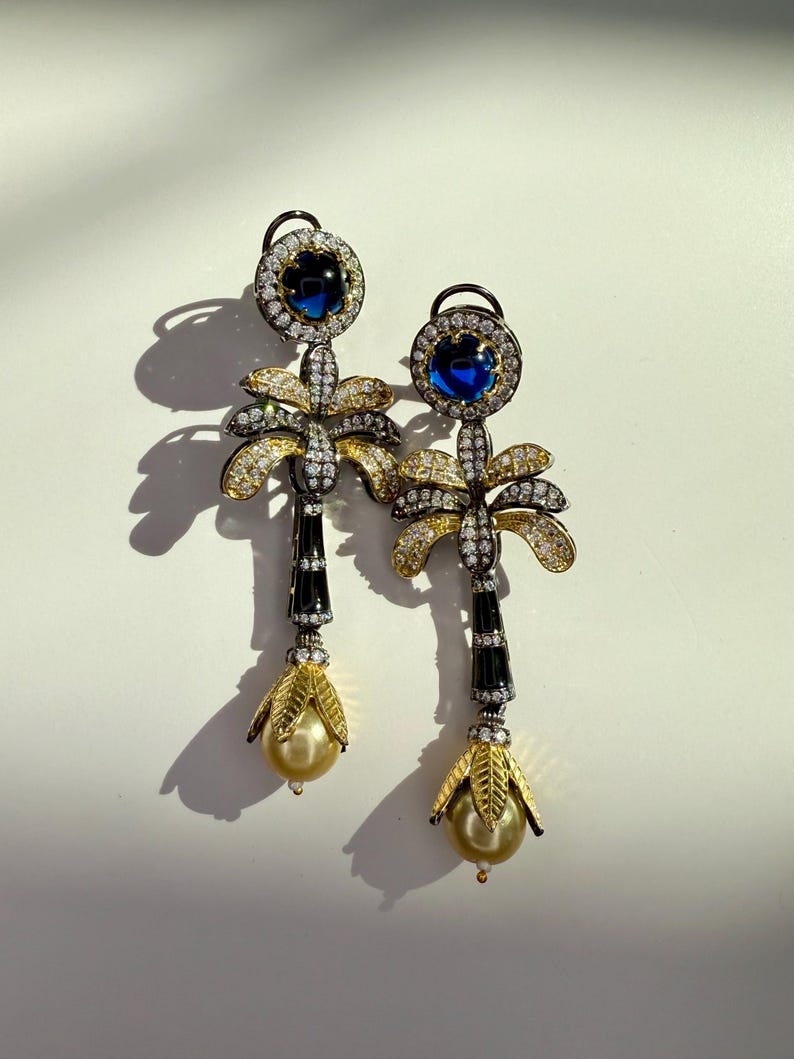 Palm Tree Statement Earrings | 10K Gold Plated | Moissanite & CZ Accents These stunning...