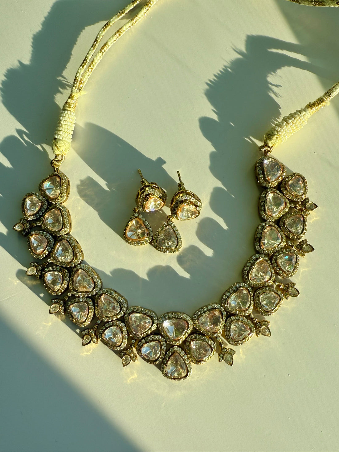 Alana Doublet Stone & Moissanite Polki Hasli Necklace Set w Earrings