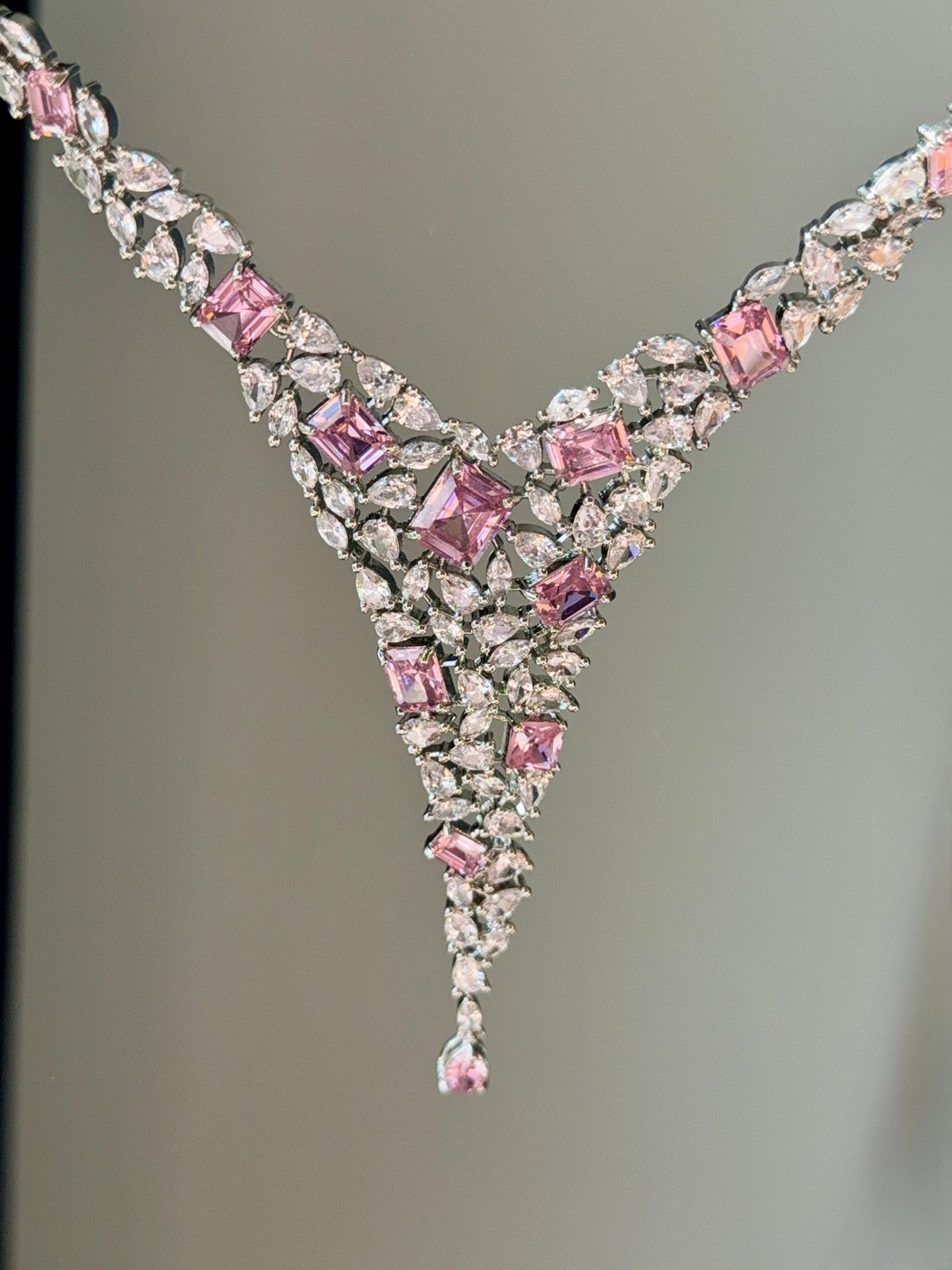 Elevate your jewelry collection with this Premium Quality Cubic Zirconia Crystal Y-Shape Necklace Set with...