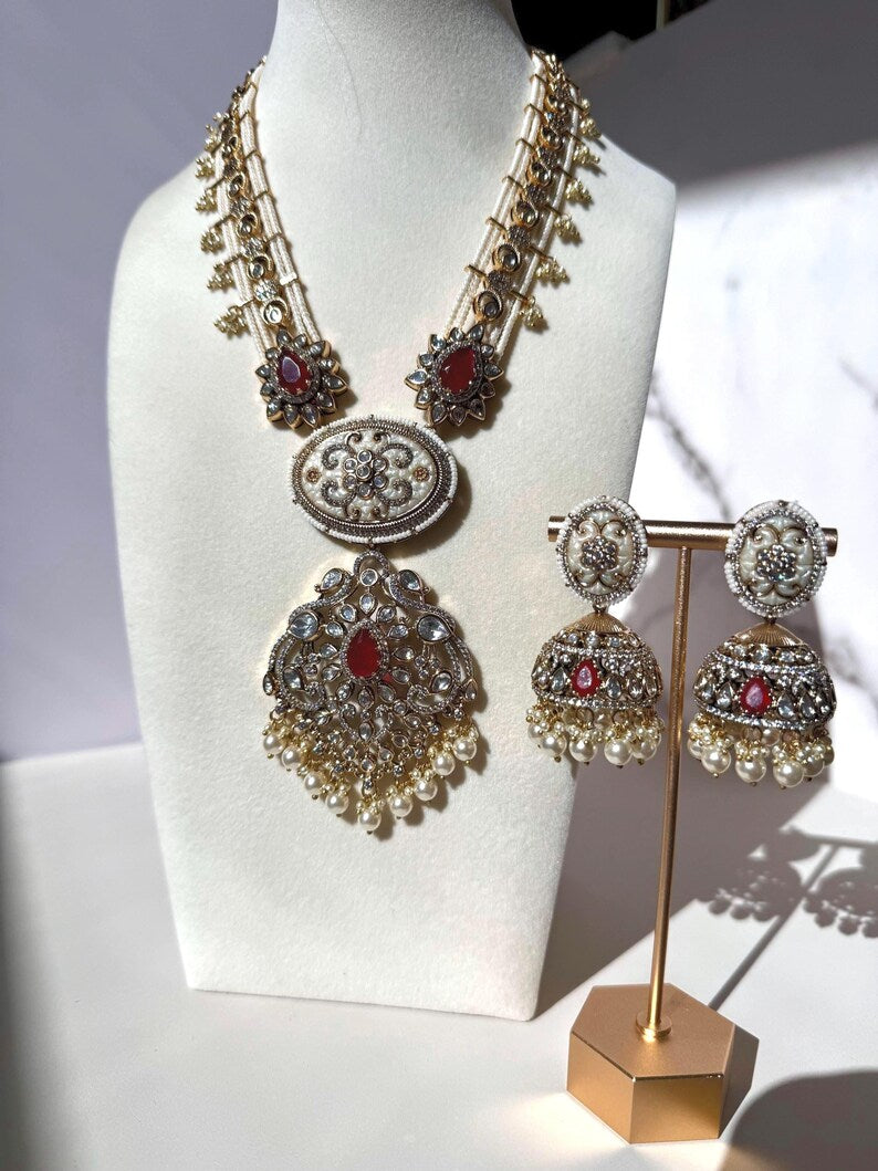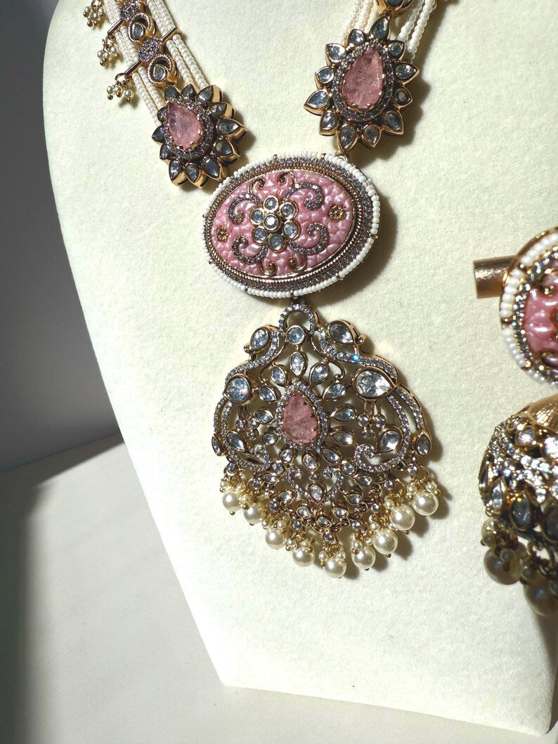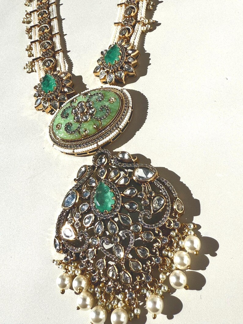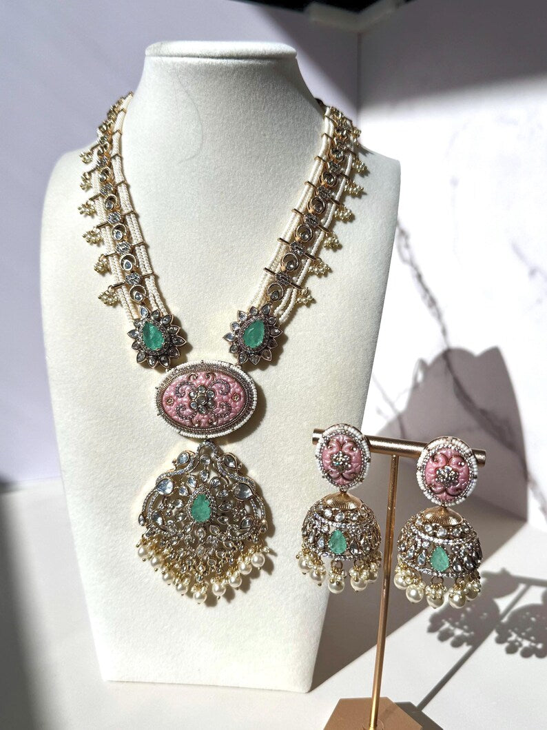 22k Gold Plated Maala Set w Premium Quality Moissanite Stones & Enamel Work