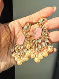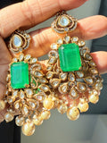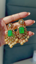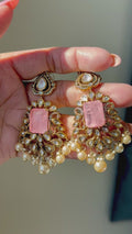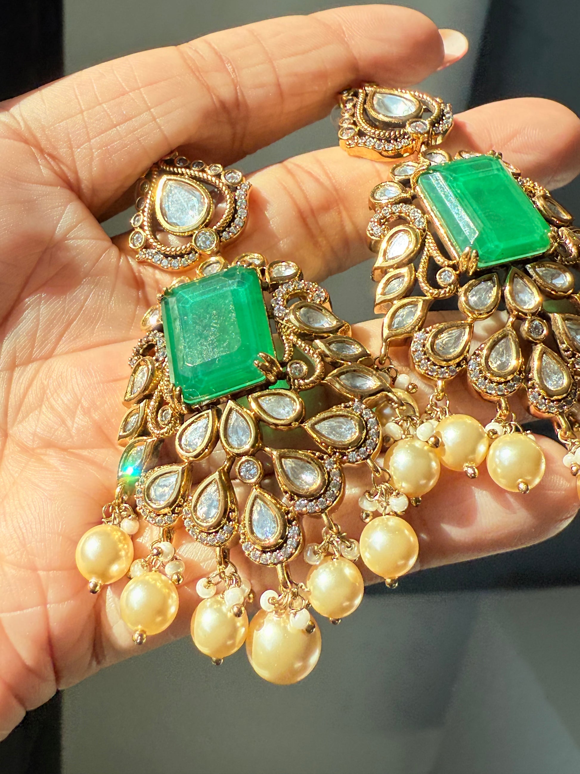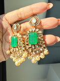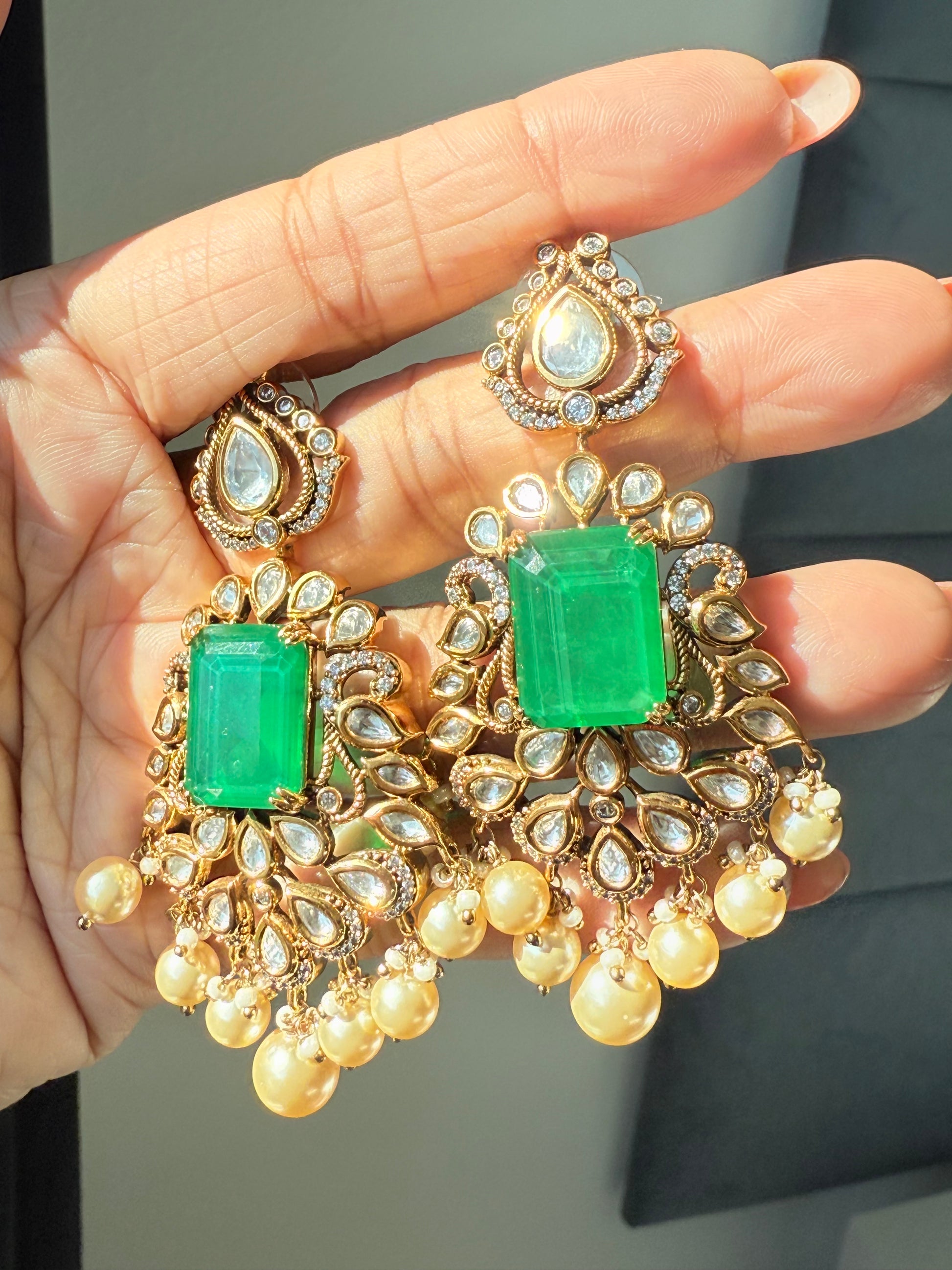 Elevate your jewelry collection with these 22K Gold Plated Premium Moissanite & Doublet Stone Statement Earrings with Ivory Pearl Beads ✨