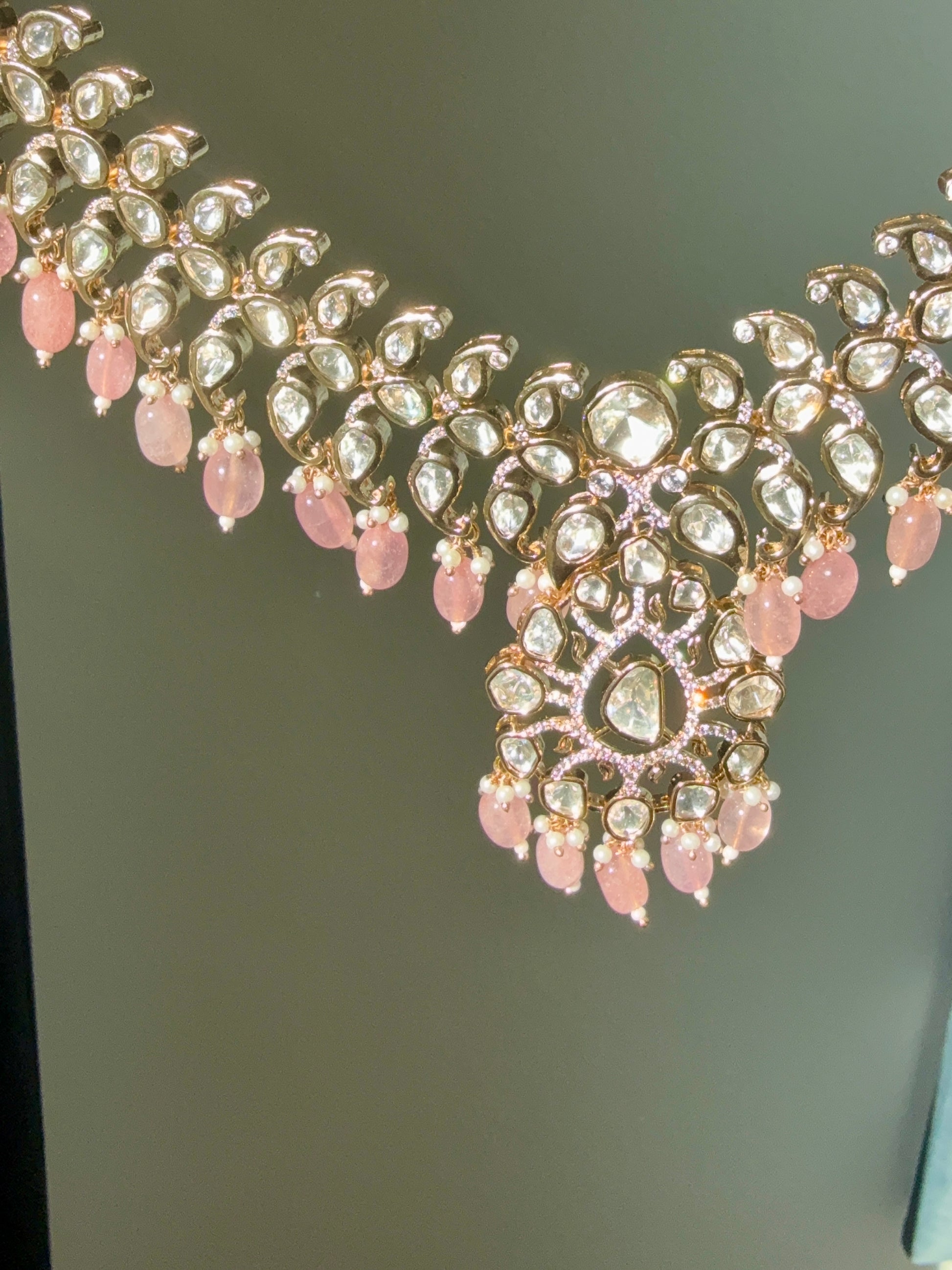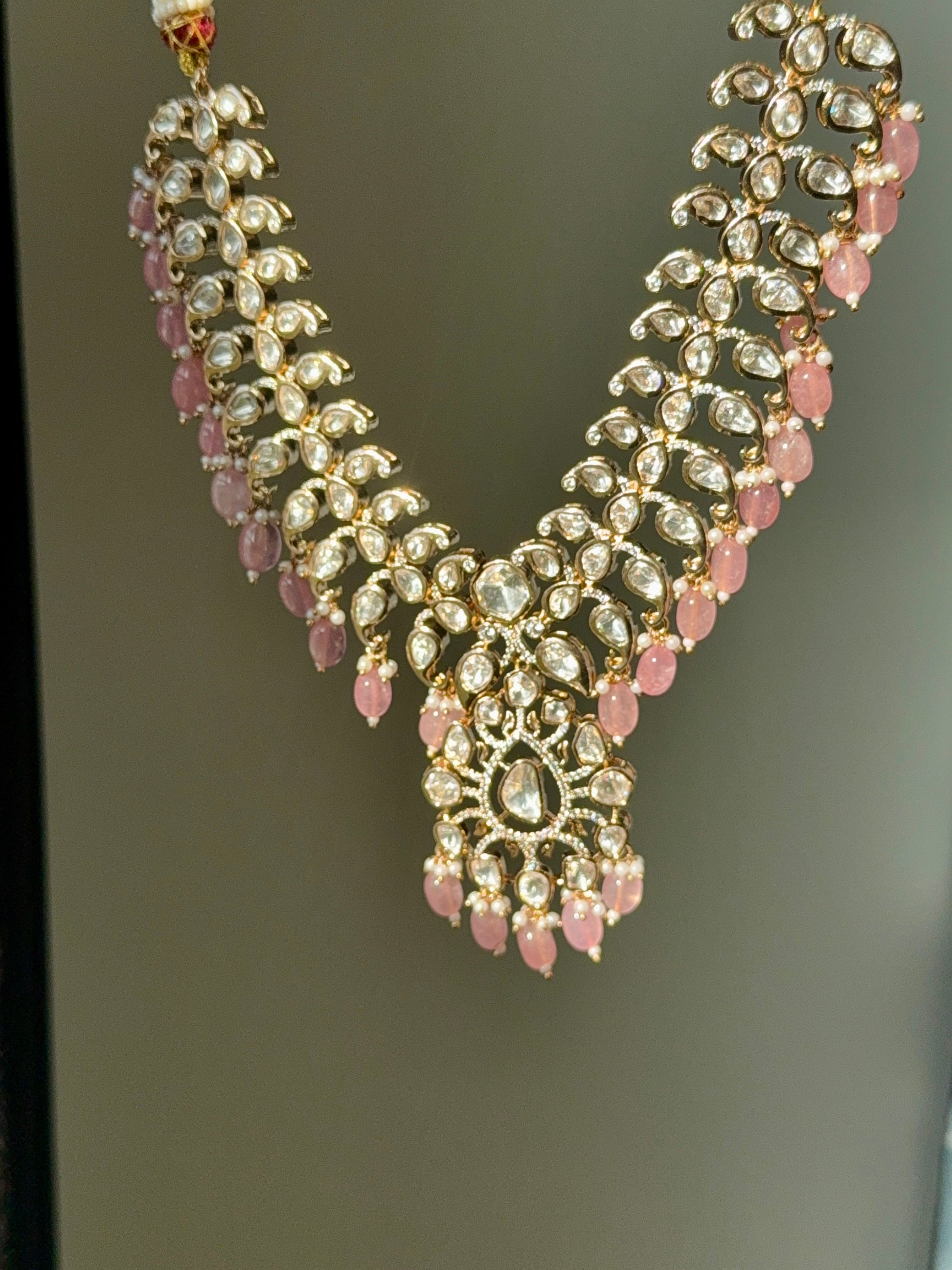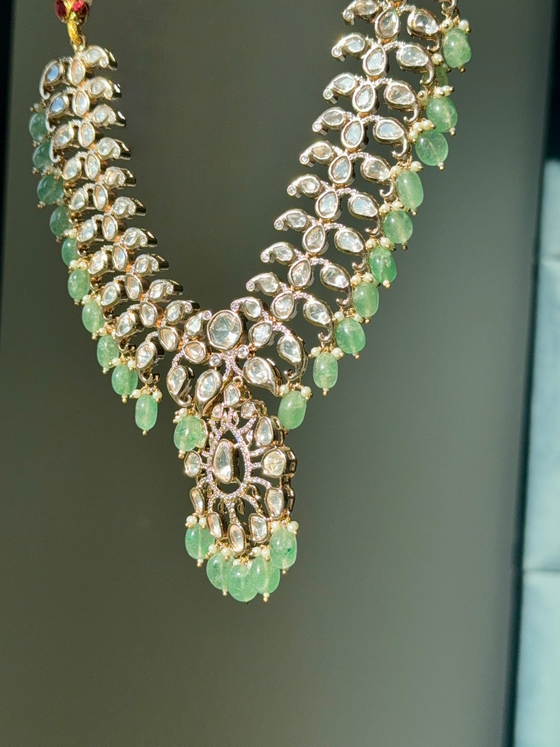 Statement Polki Necklace with semi-precious stone bead detailing