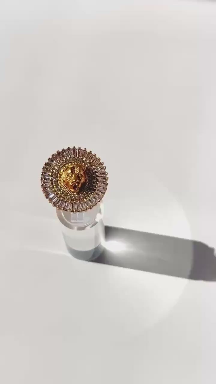 Hand-crafted with exceptional precision, this ring features an intricately sculpted tiger motif adorned with sparkling Cubic Zirconia accents and finished with a premium gold-polish shine. Every curve, line, and expression is thoughtfully shaped to convey depth, emotion, and storytelling, making it not just jewelry — but wearable art.