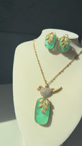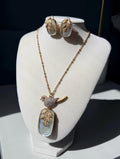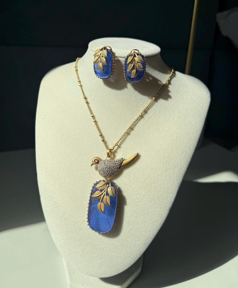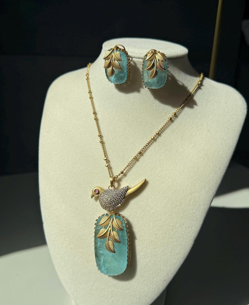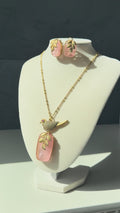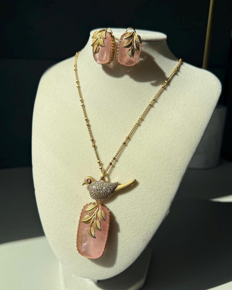 Elevate your jewelry collection with this stunning bird pendant set — a beautiful blend of elegance, symbolism, and luxurious craftsmanship. Designed with a luminous mother-of-pearl or doublet stone centerpiece, the pendant reflects soft iridescent tones that add a natural, radiant glow.