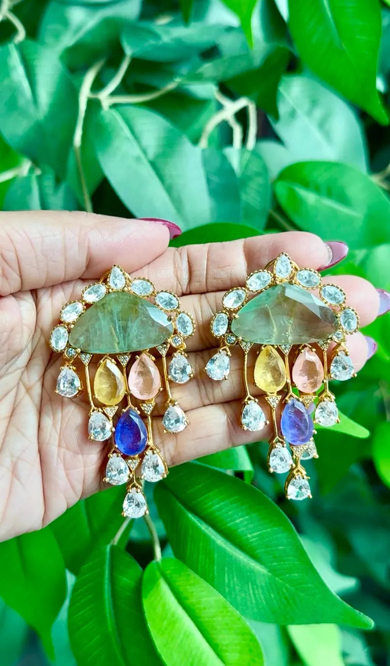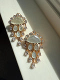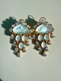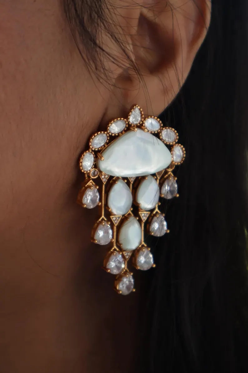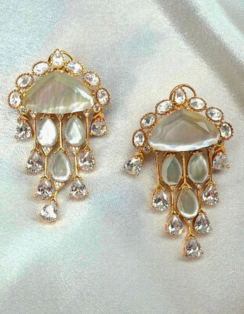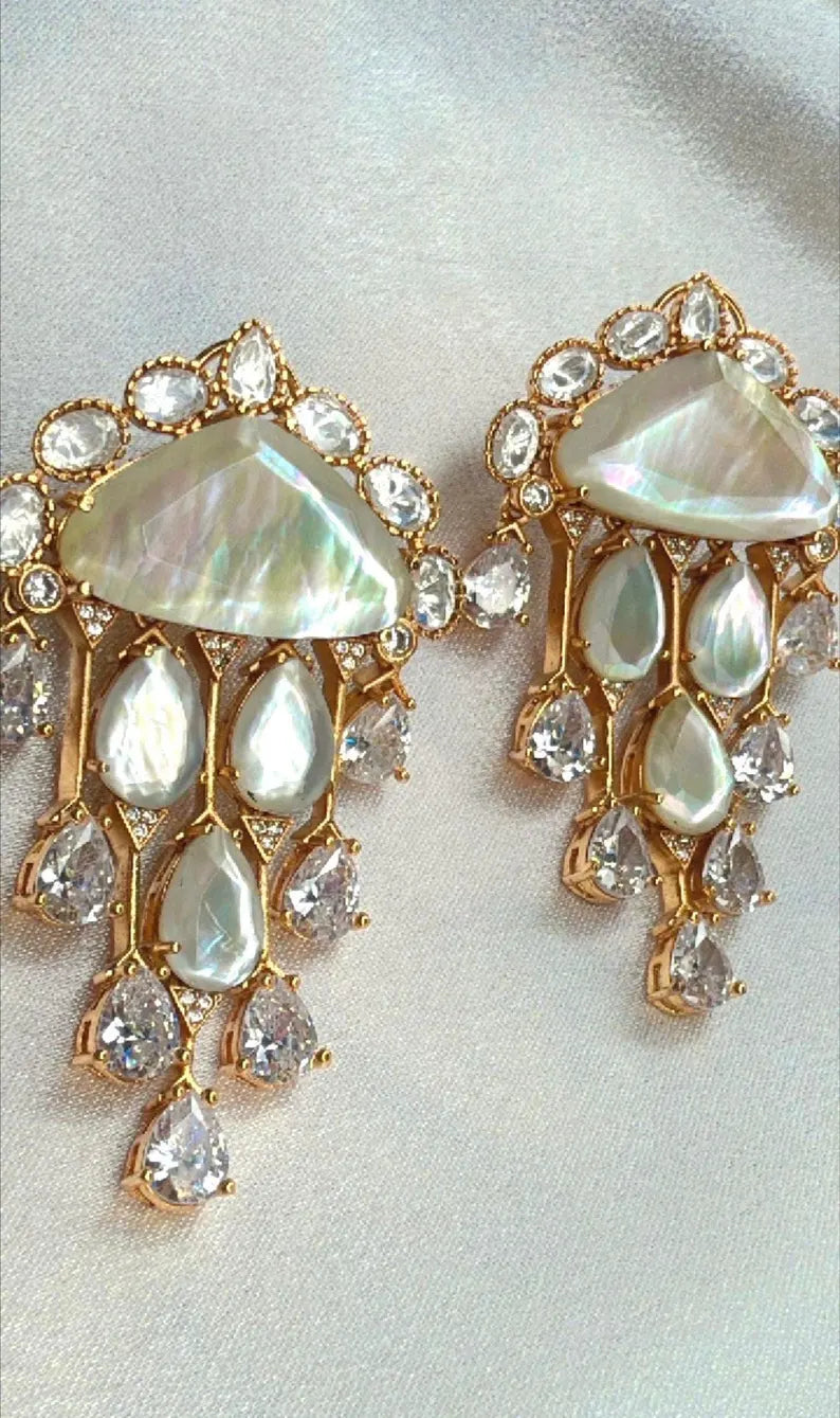 Chandni Premium Moissanite Statement Earrings w Mother of Pearl/ Doublet stone & 10k gold plating