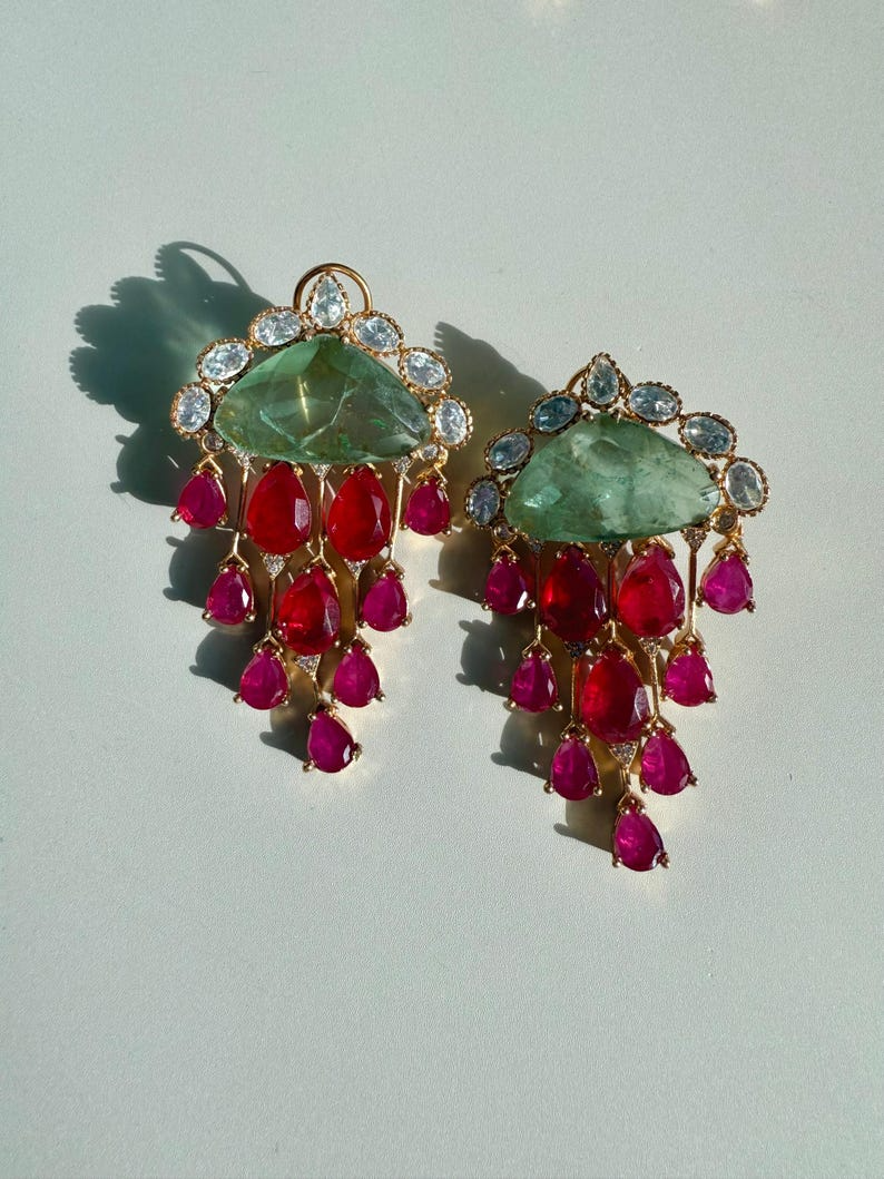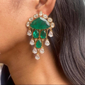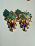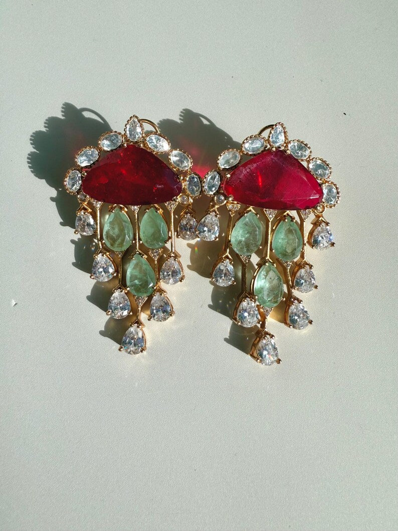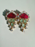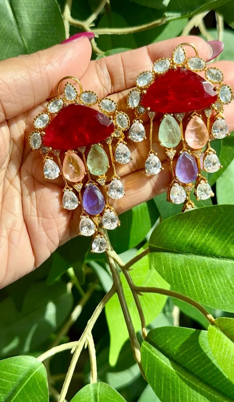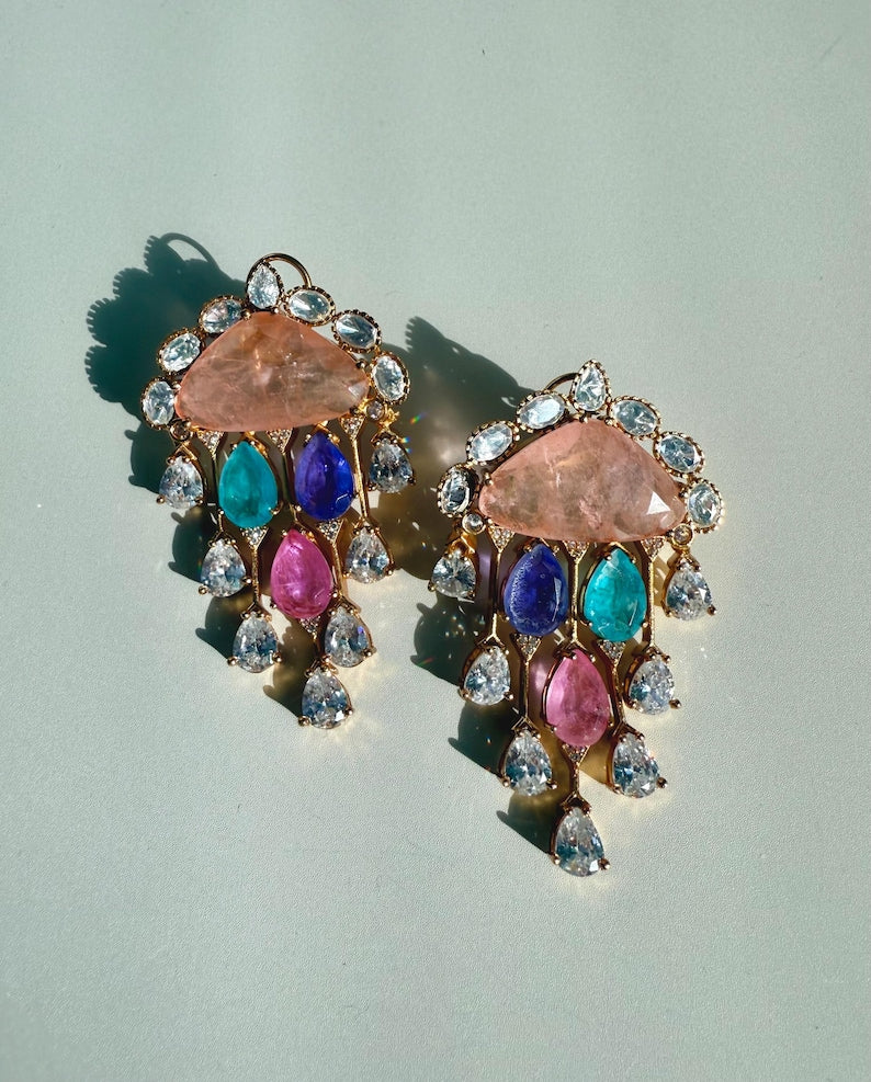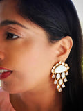 Chandni Premium Moissanite Statement Earrings w Mother of Pearl/ Doublet stone & 10k gold plating