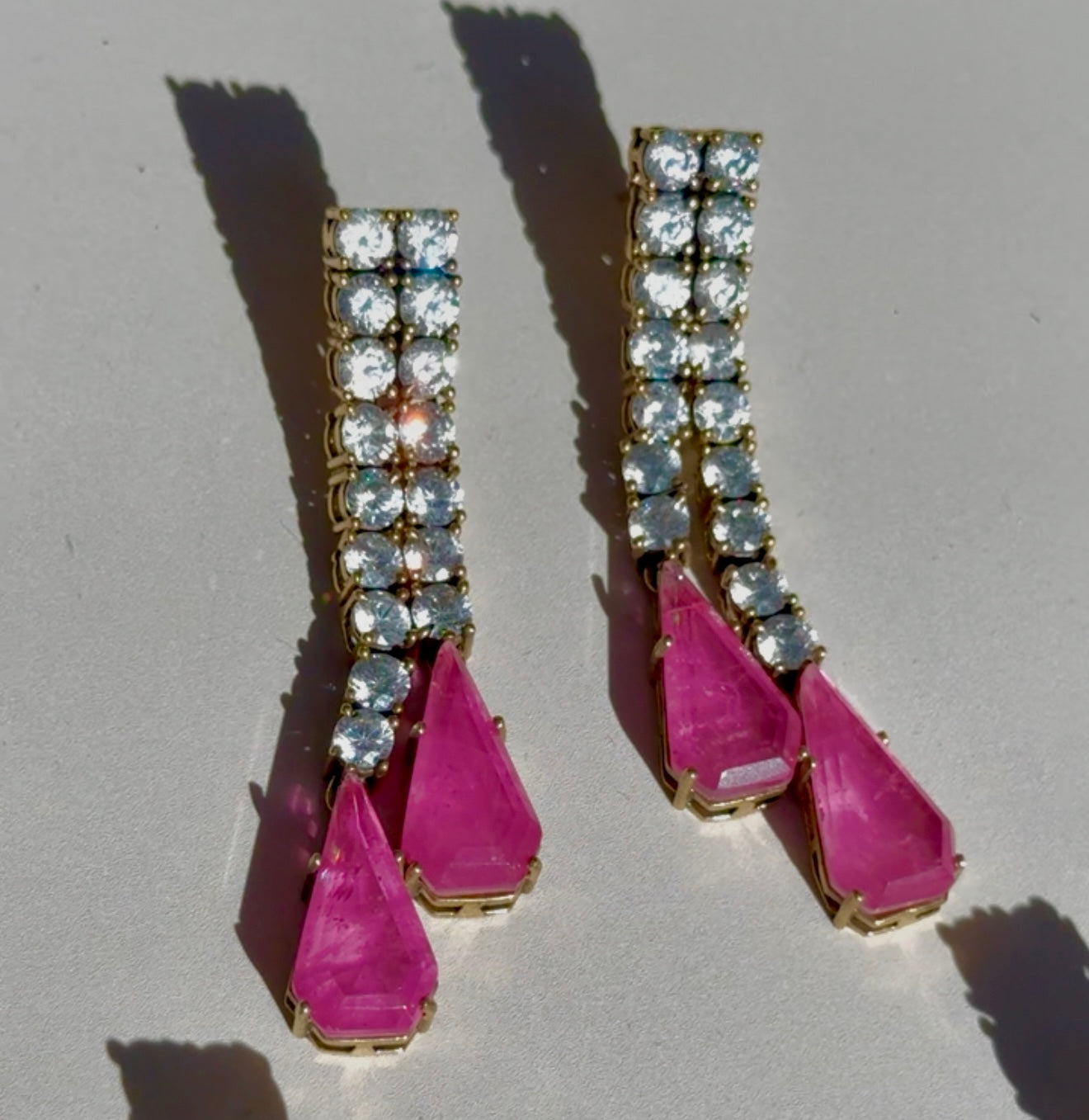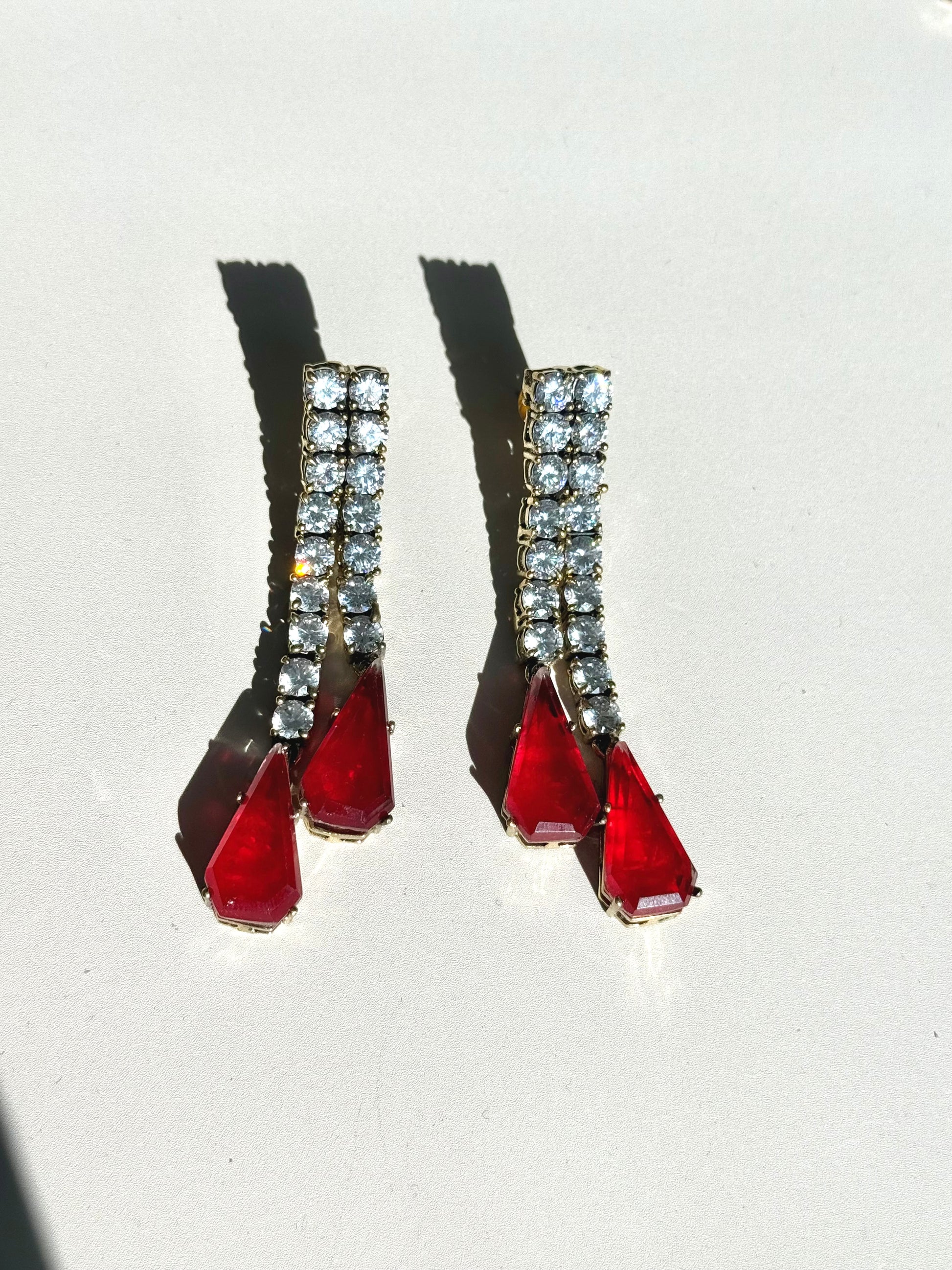 Crafted with precision, each earring features a sleek vertical silhouette adorned with shimmering crystals and a dimensional doublet stone that catches the light from every angle. Their slim, elongated shape flatters every face type, making them the perfect balance of subtle glam and modern sophistication.