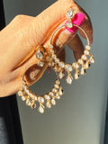 Moissanite chand baali, 10k gold plated earrings, desi jewelry USA, Indian Pakistani earrings, premium moissanite jewelry, small chand bali earrings, traditional crescent earrings, lightweight ethnic earrings.