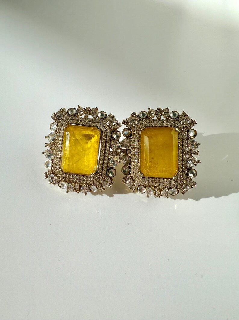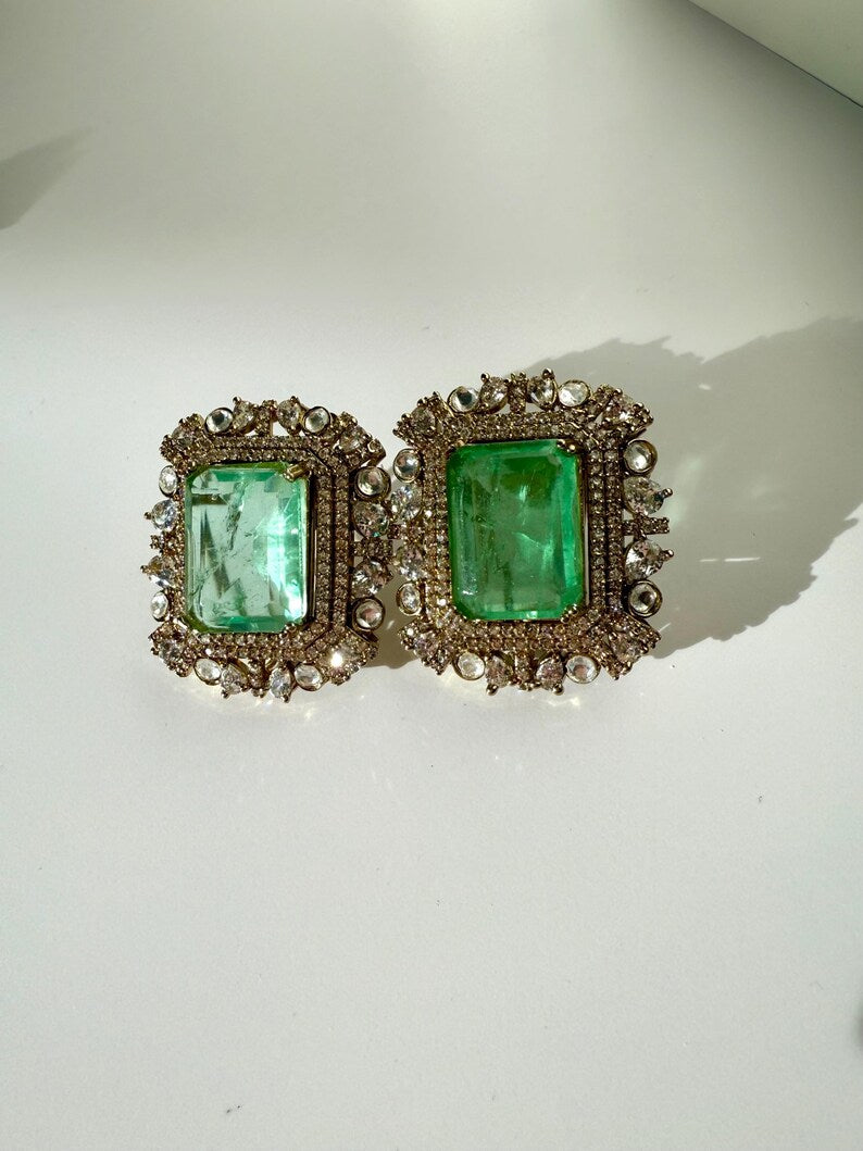 Large Doublet Stud Earrings | 10K Gold Plated | Cubic Zirconia | Premium Indian Wedding Jewelry