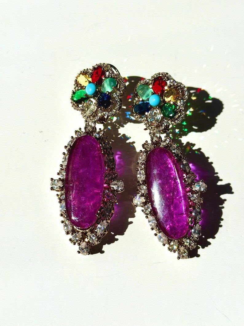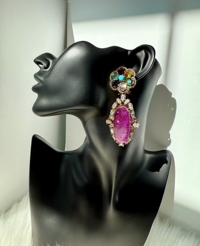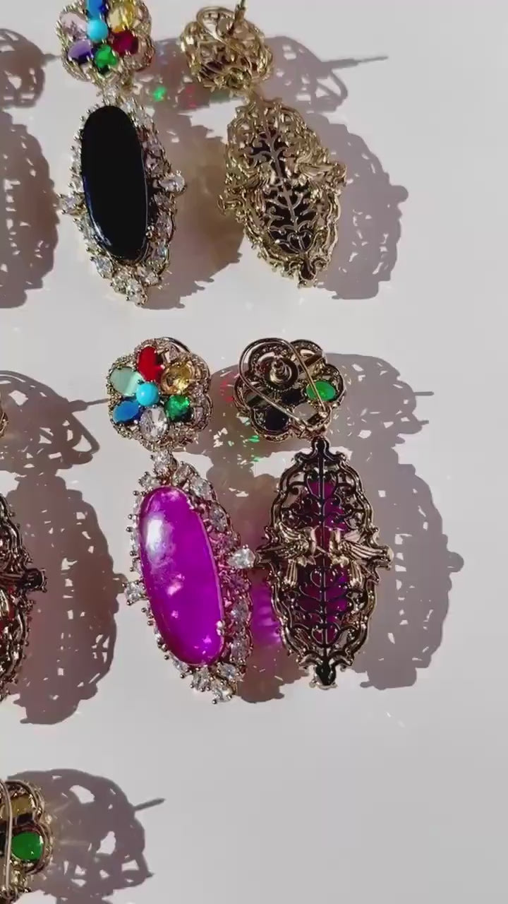 Stones: Premium quality Moissanite stones & Premium-quality doublet stones in Purple, Tea Pink, Emerald Green, Hot Pink, Navy Blue and Black