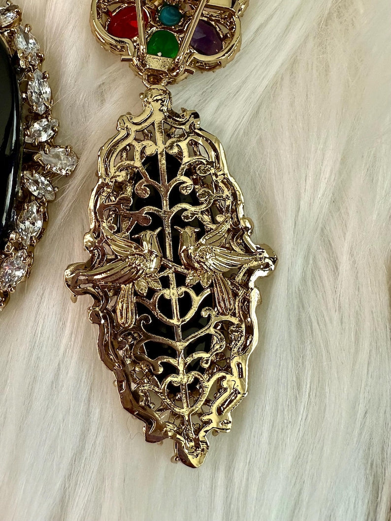 Hummingbird Statement Earrings | 10K Gold Plated | Doublet Stones
