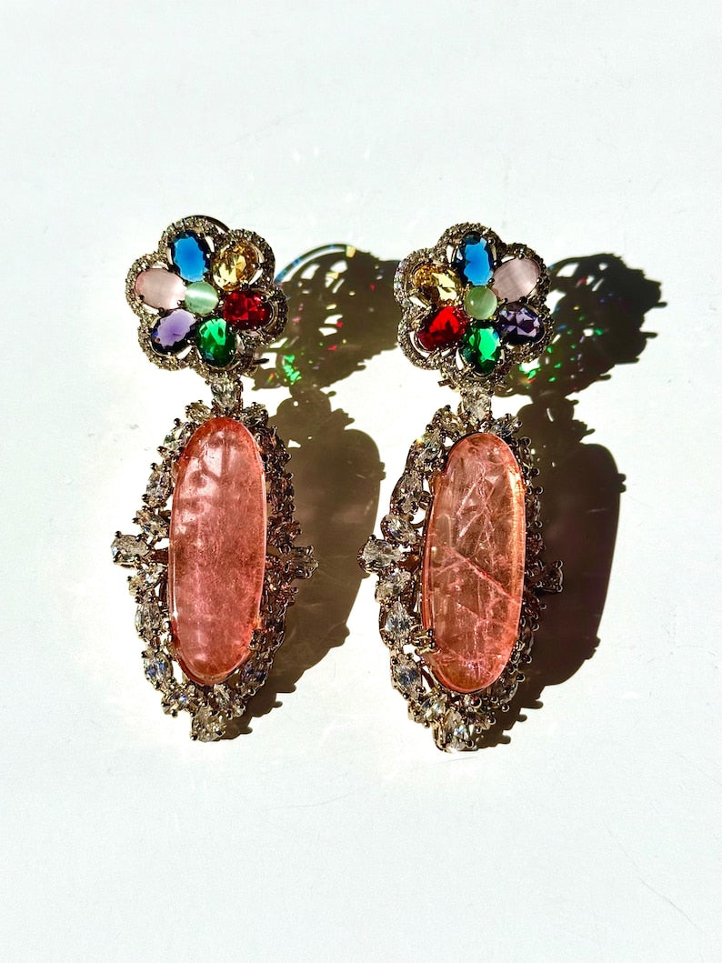 Crafted with 10K gold plating for a luxurious finish, these earrings combine elegance, vintage charm, and modern playfulness — super cute, trendy, and eye-catching.