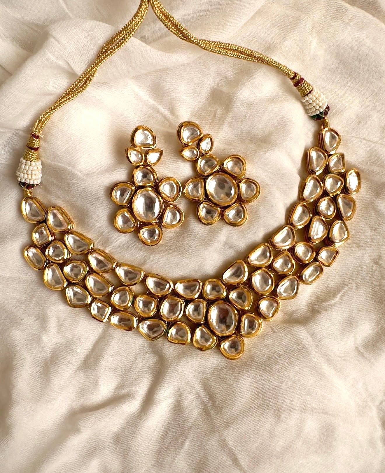 Stones: High-clarity Kundan with semi-precious accents