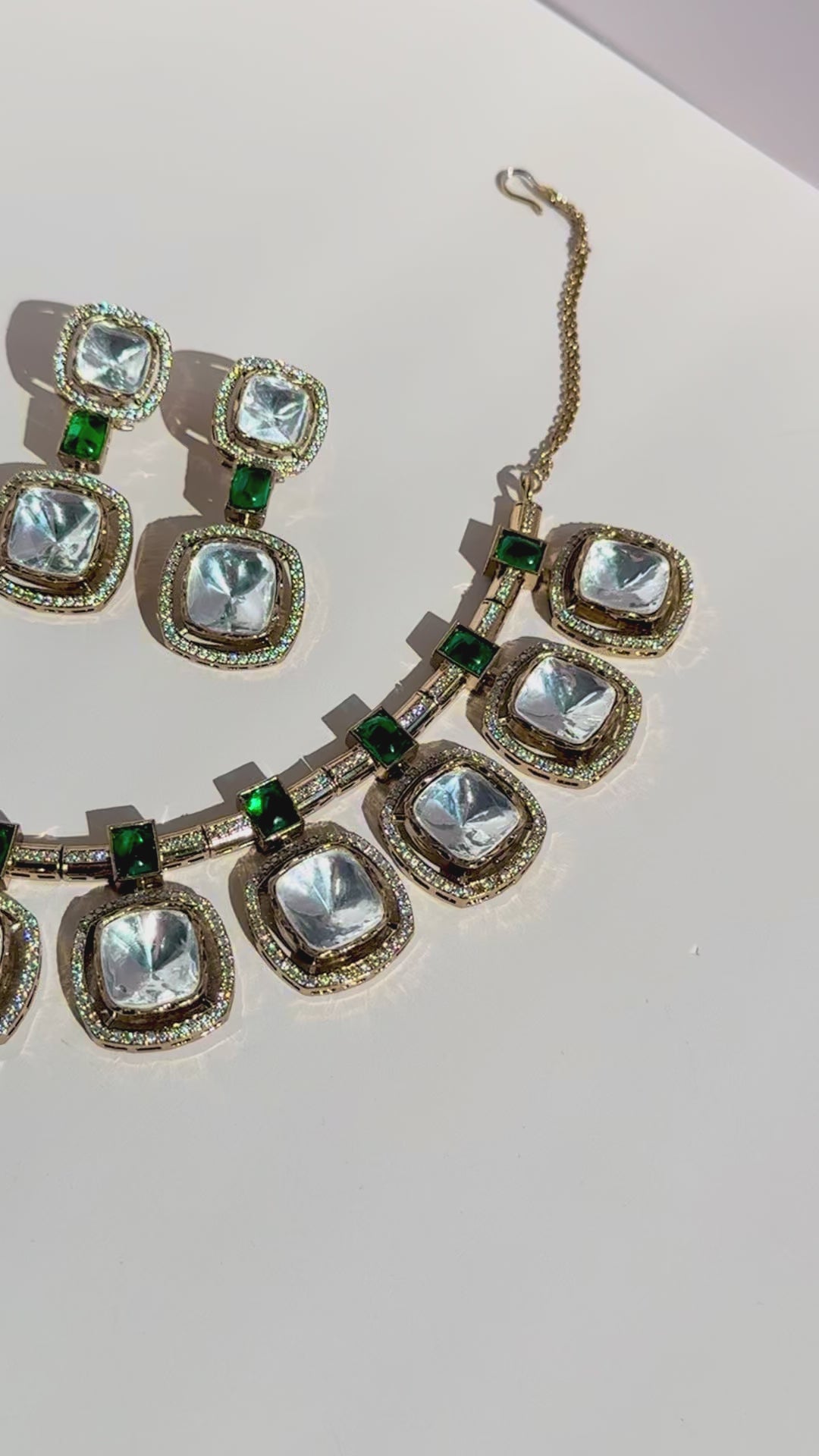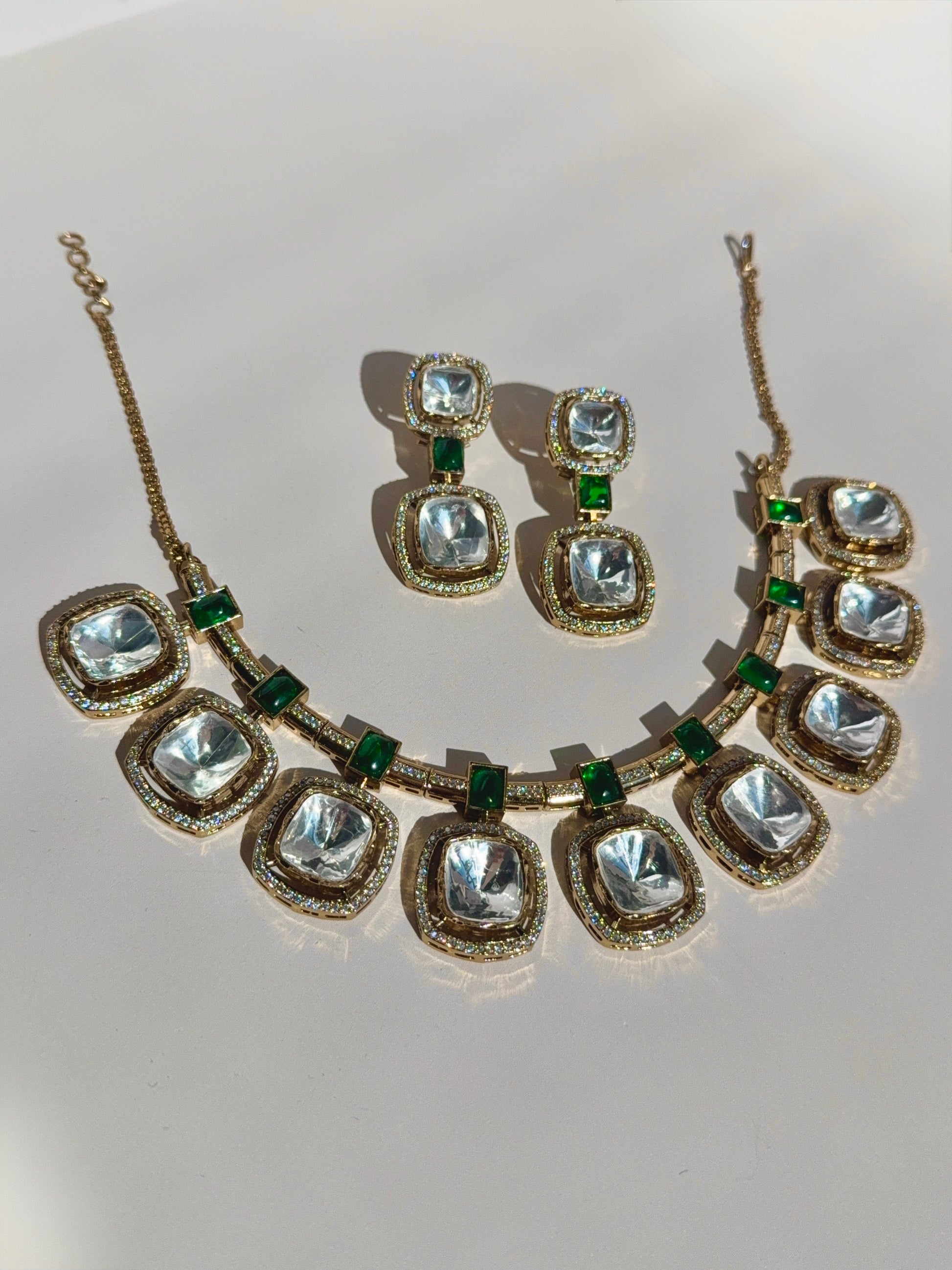 Premium Polki Necklace Set ,Cubic Zirconia & Pota Doublet Stone Work