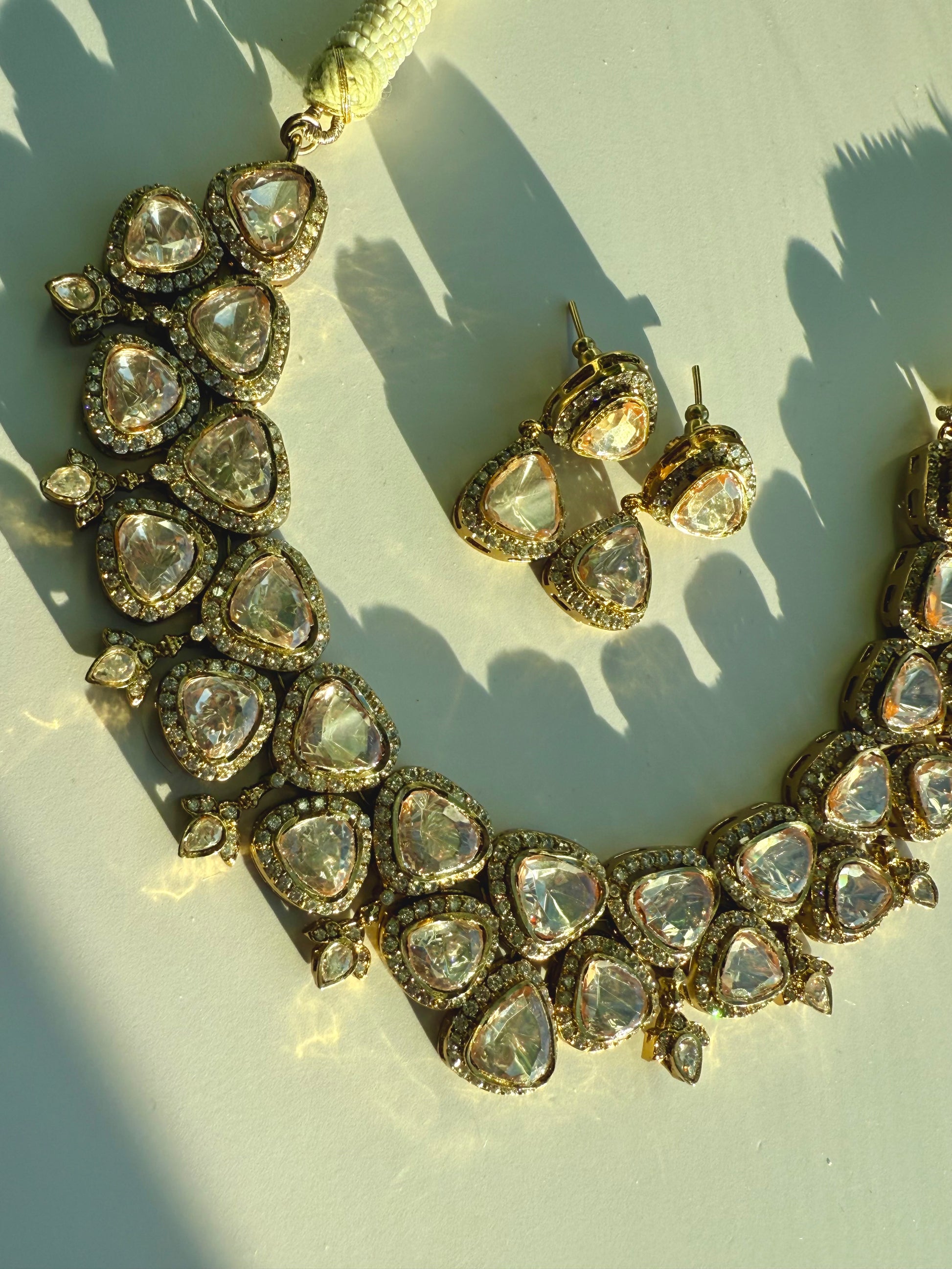 Shahi Moissanite Polki Set w 18k Gold Plating, Premium Quality
