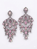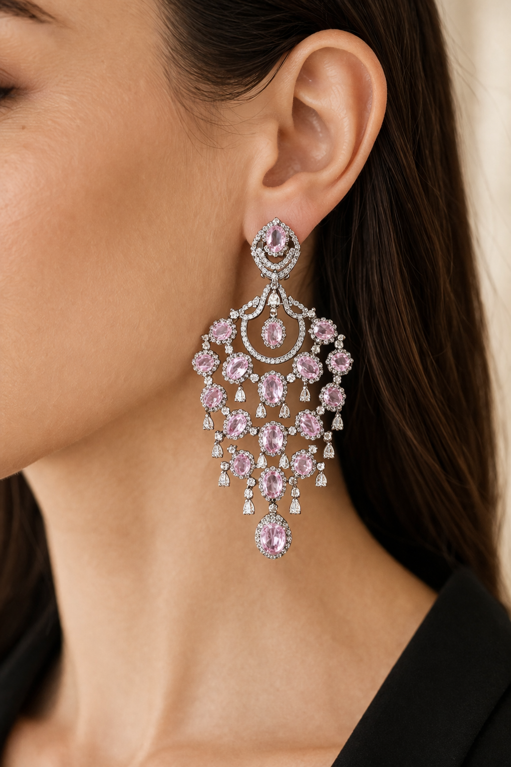 These rose cut crystal chandelier earrings are a true reflection of fine artistry and attention to detail. Each crystal is meticulously cut in the classic rose cut style, allowing light to softly reflect from every angle. The intricate chandelier design cascades beautifully, creating a graceful movement that enhances their luxurious appeal.