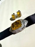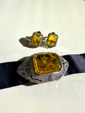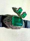 The black band enhances the brilliance of the stones, creating a powerful yet refined look that stands out effortlessly.