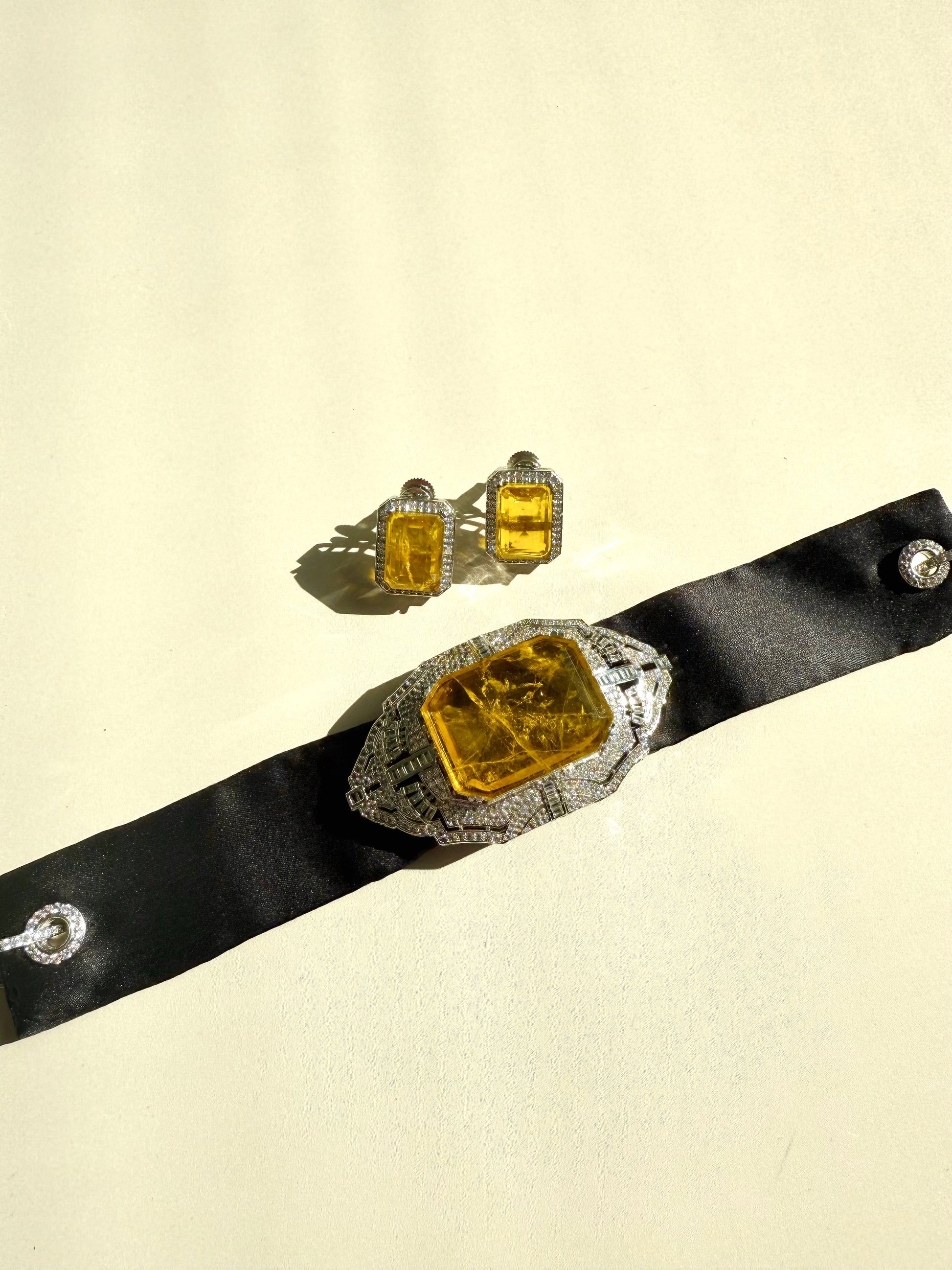 Crafted with striking doublet stones and high-quality cubic zirconia, this choker blends contemporary elegance with dramatic contrast.