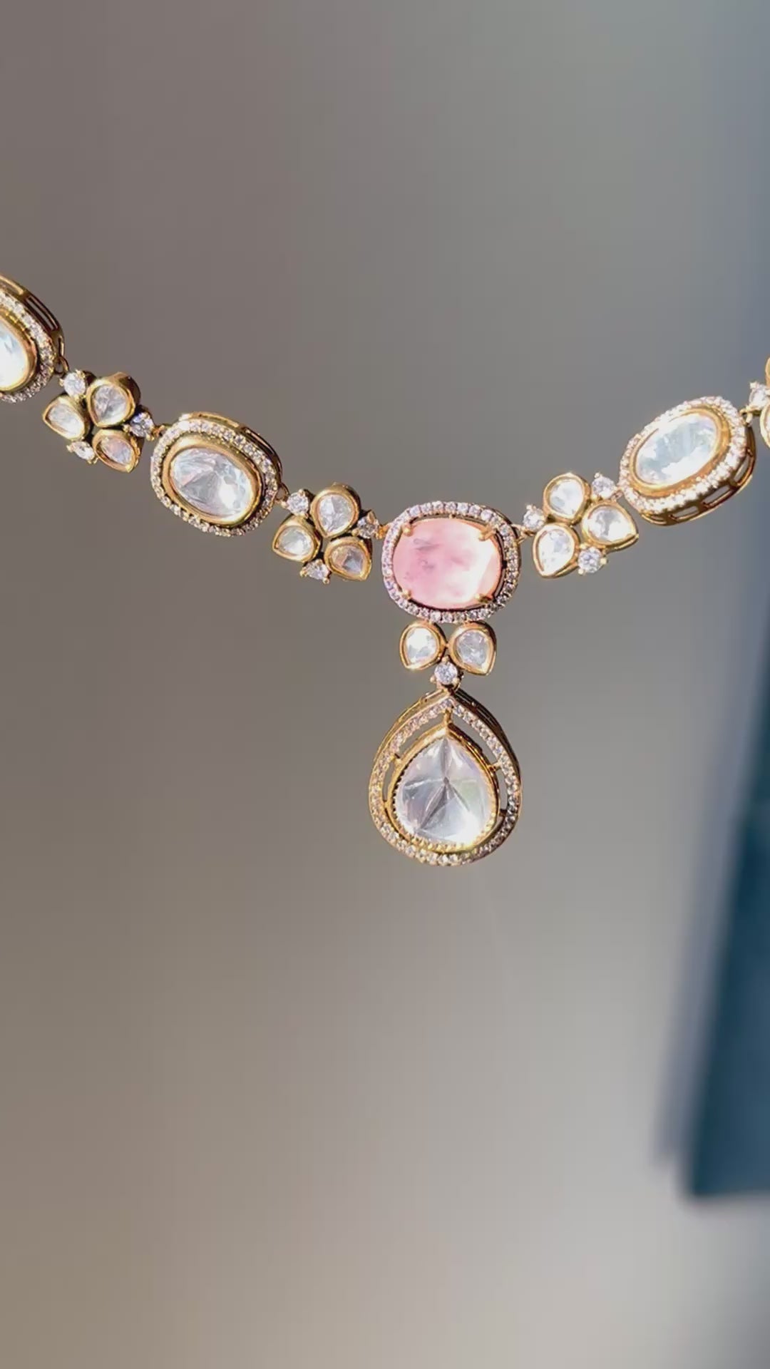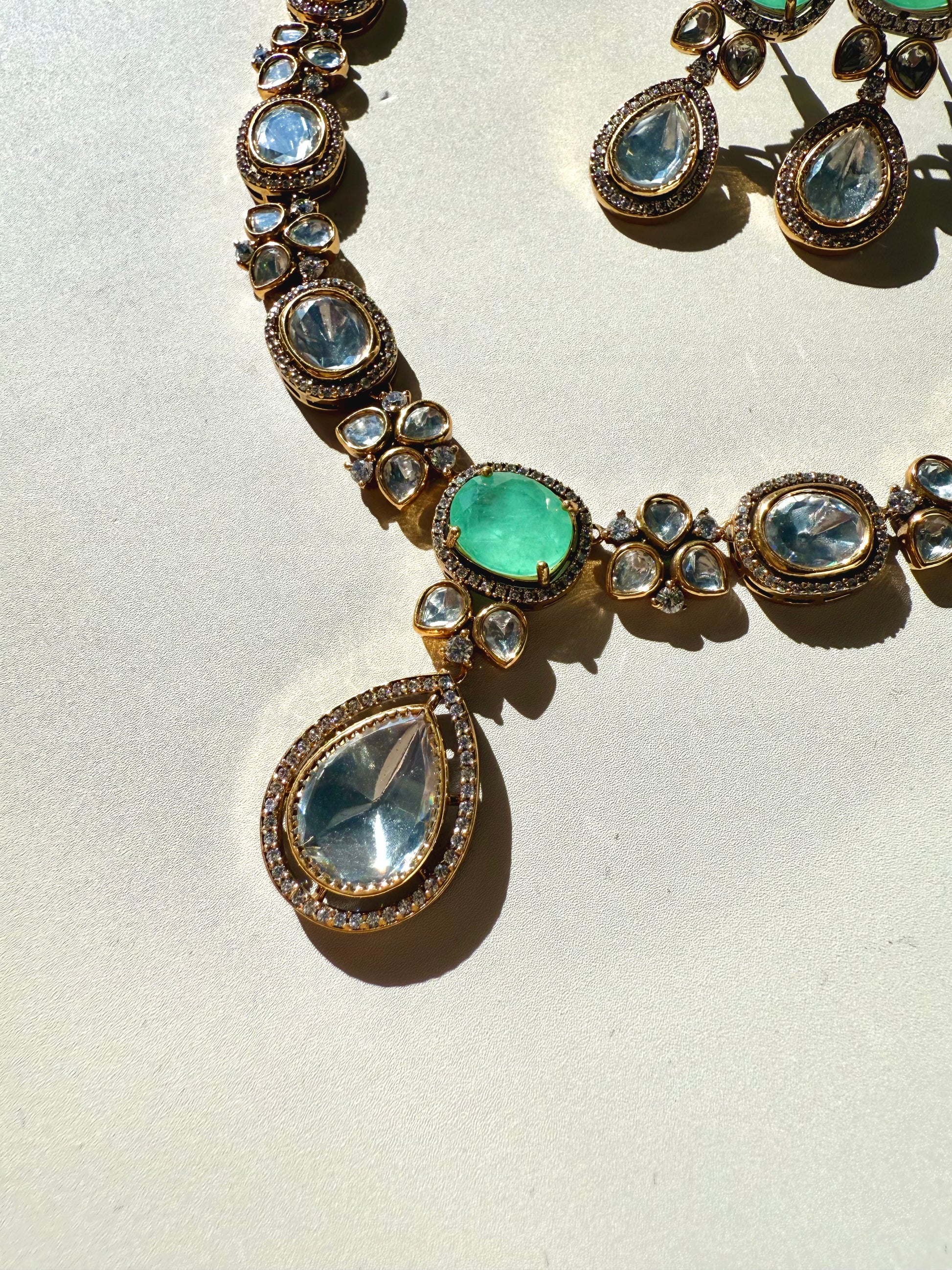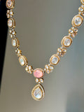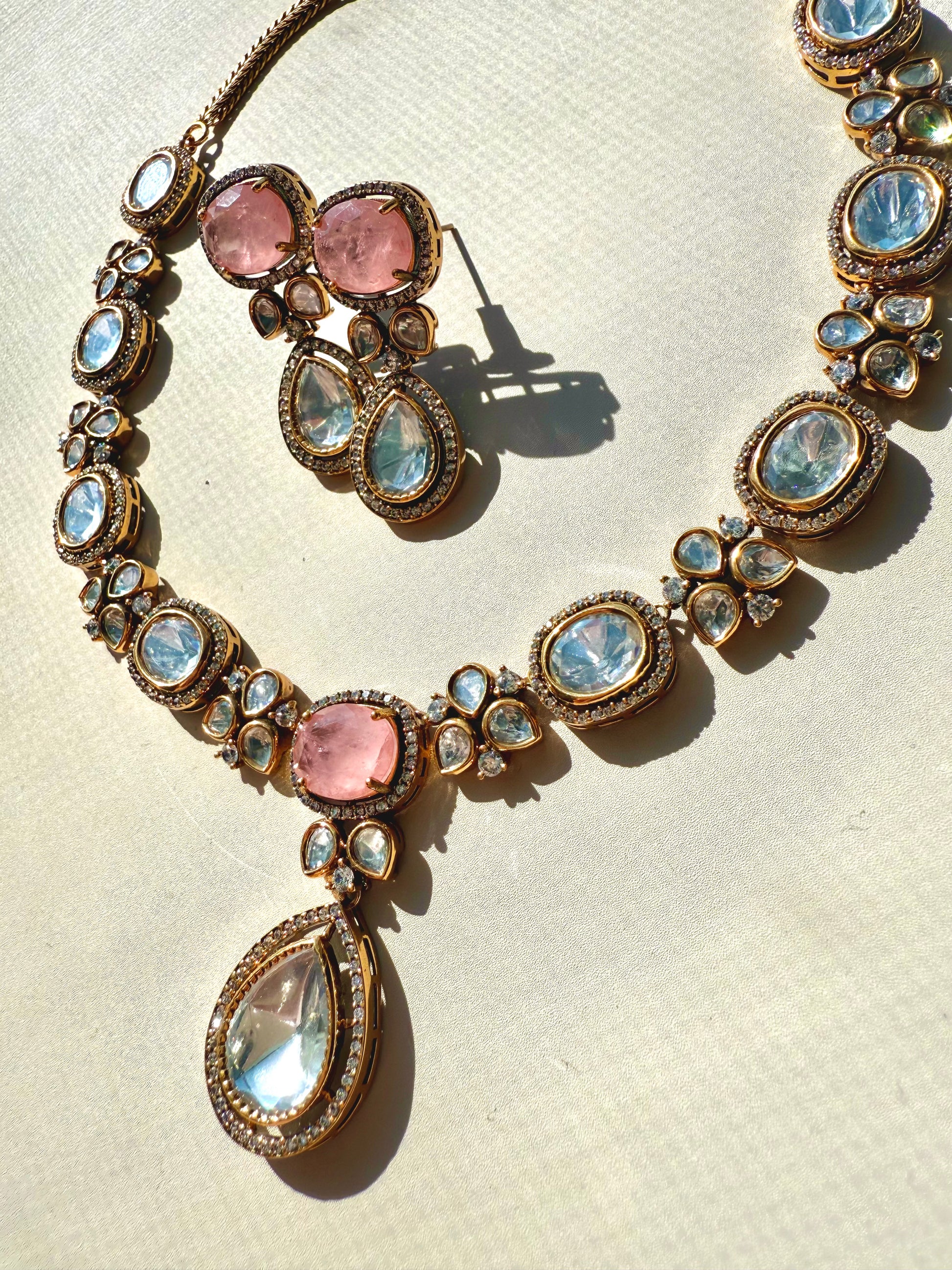 Moissanite Polki jewelry, 22k gold plated set, doublet stone necklace, Indian Pakistani bridal jewelry, luxury statement set, heritage Polki design, South Asian jewelry USA.