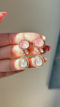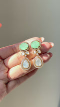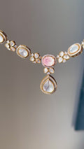 Expertly handcrafted, this set features brilliant Moissanite Polki stones that offer diamond-like fire and clarity, beautifully complemented by vibrant doublet stone accents that add depth and color. The traditional Polki-style setting paired with 22k gold plating creates a luxurious, regal aesthetic that feels both timeless and contemporary.