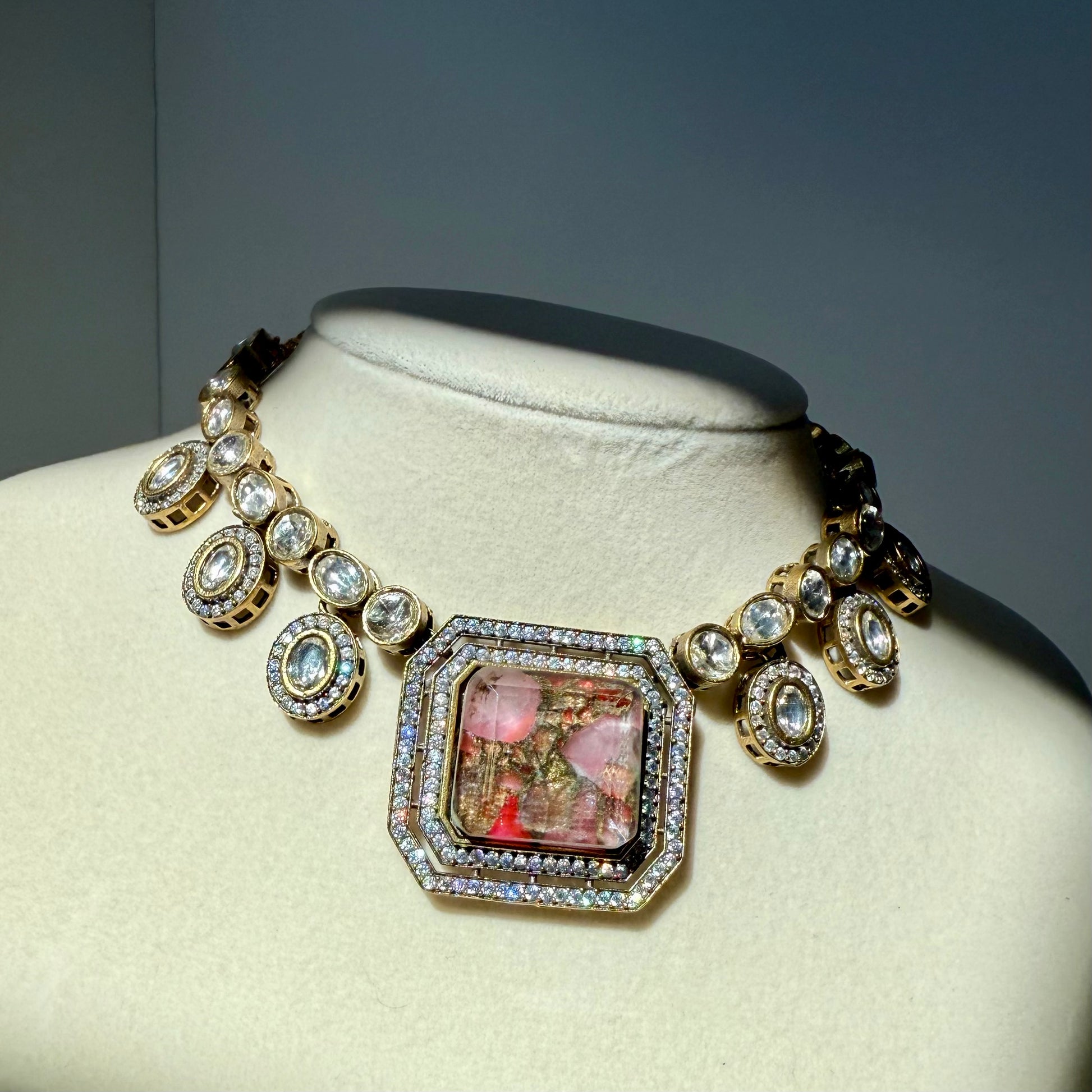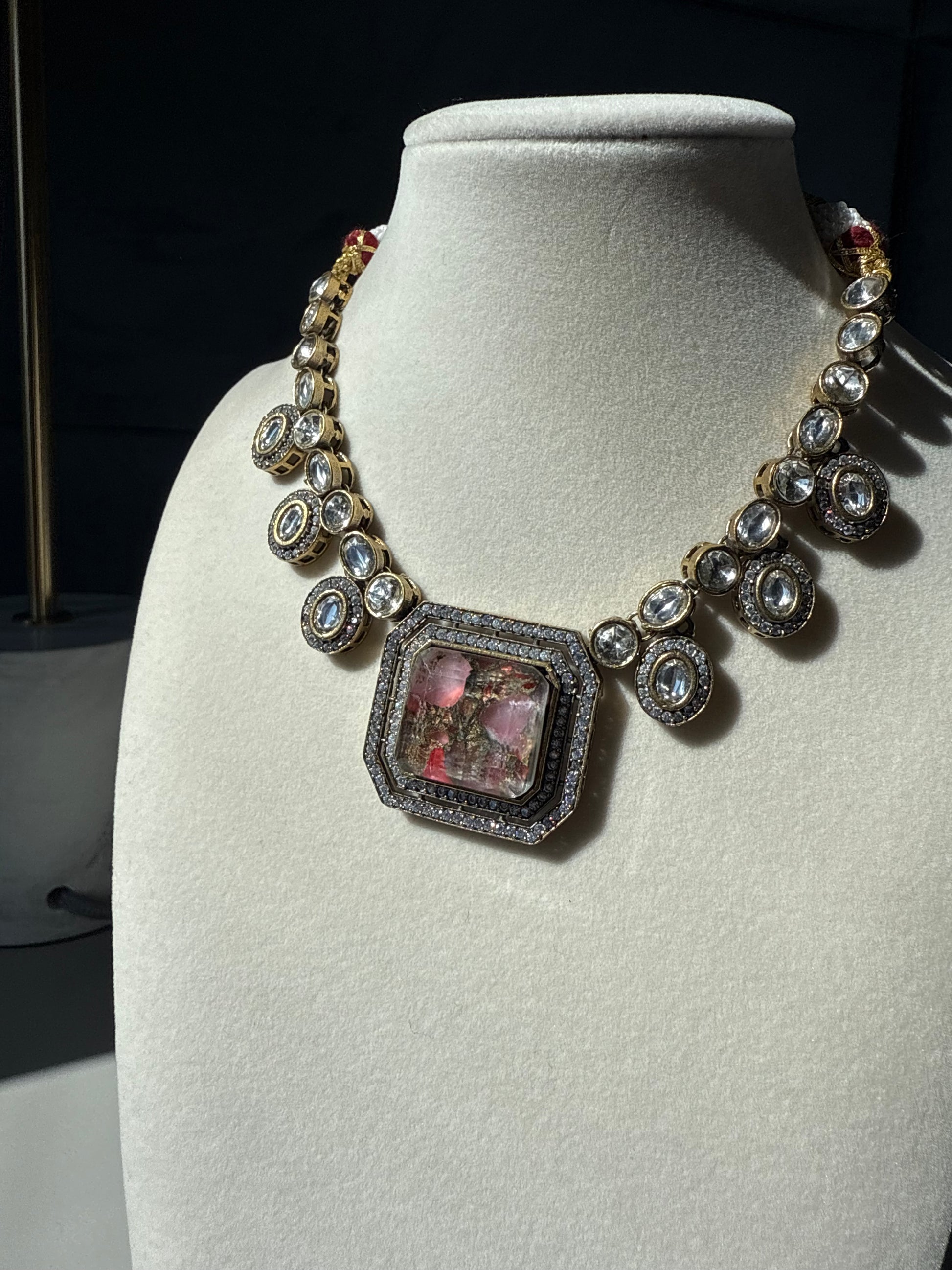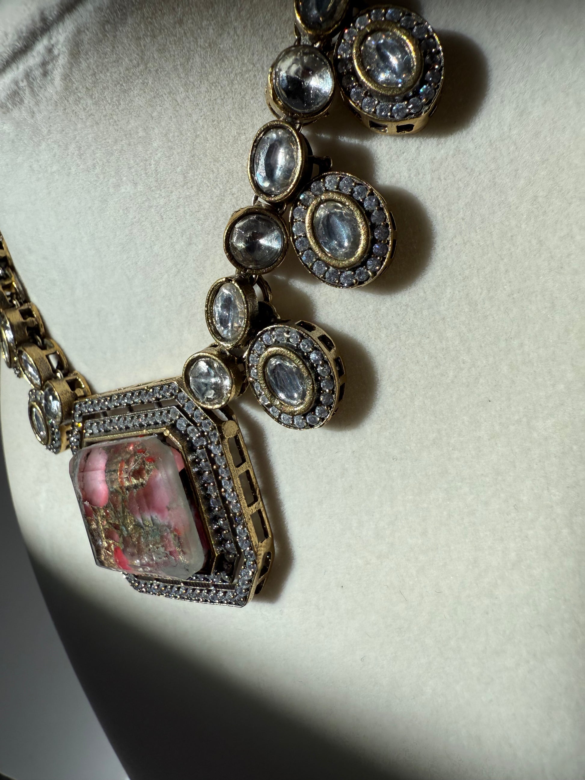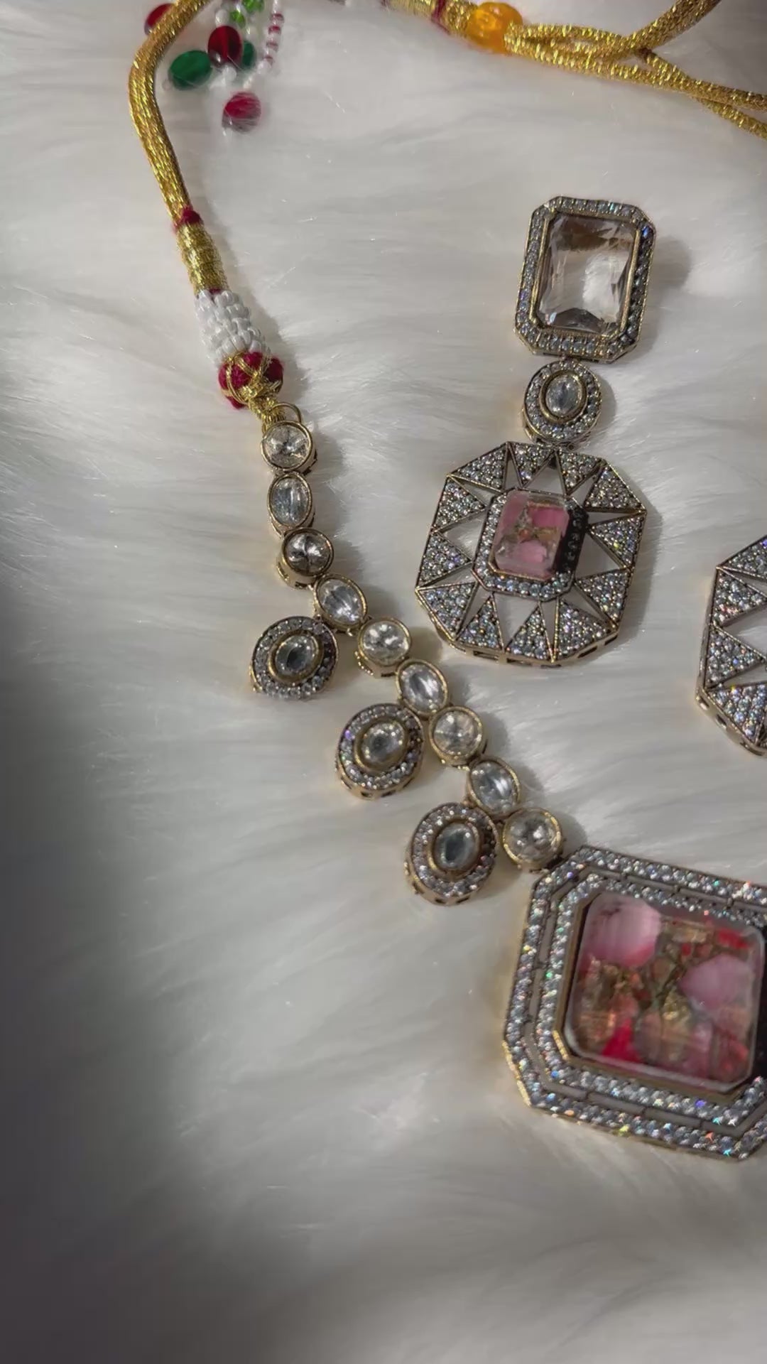 Style: Indian bridal jewelry, Pakistani wedding jewelry, luxury statement necklace set, contemporary fusion jewelry.