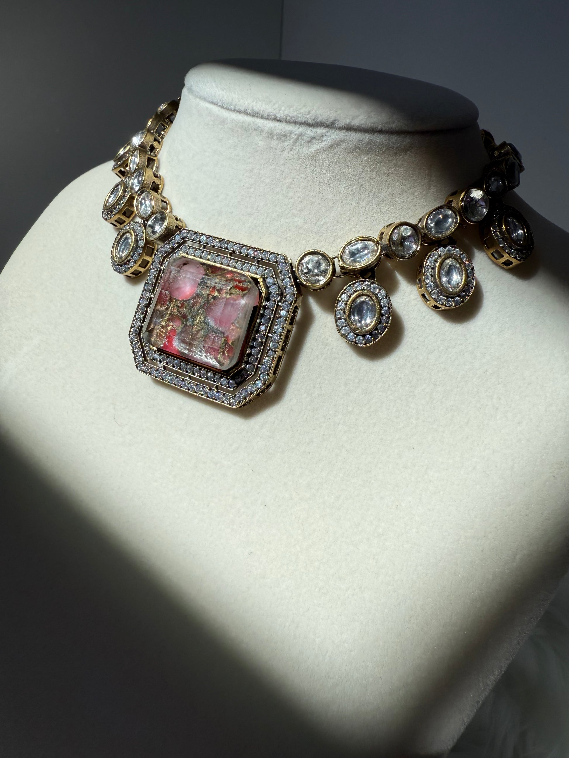 Comes with coordinated statement earrings designed to complement the necklace perfectly—together creating a cohesive, glamorous look.